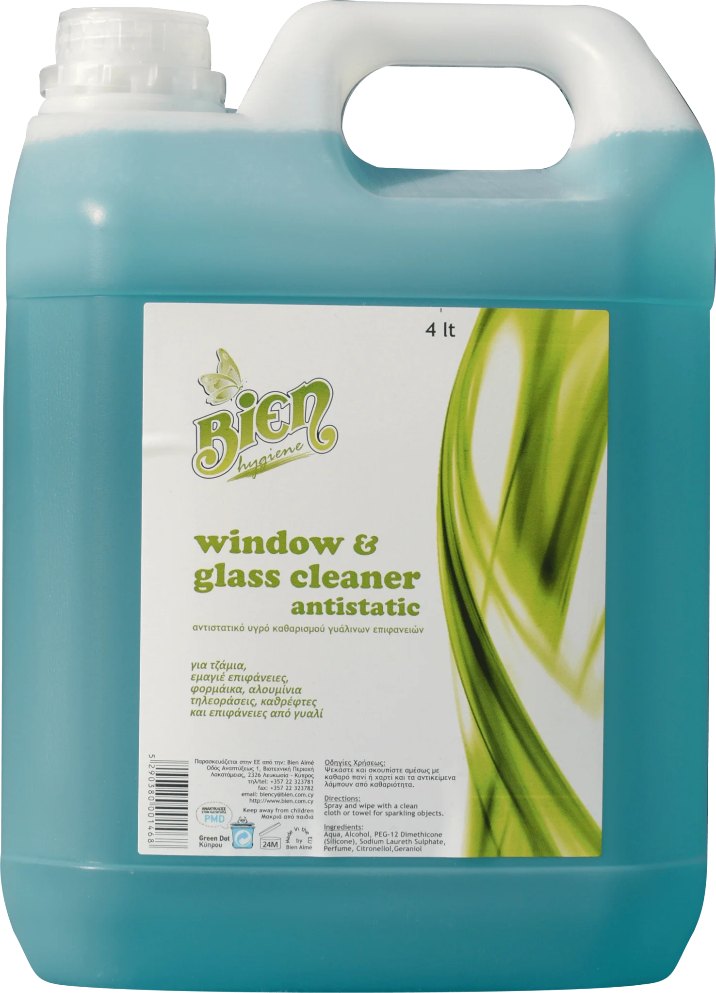 Το αντιστατικό καθαριστικό υγρό για γυάλινες επιφάνειες της Bien είναι ένα προϊόν με βάση τη γερμανική φόρμουλα, ειδικά σχεδιασμένο για να καθαρίζει και να προστατεύει αποτελεσματικά τις γυάλινες επιφάνειες από τη σκόνη.